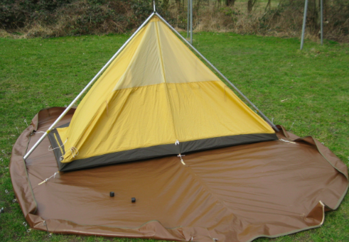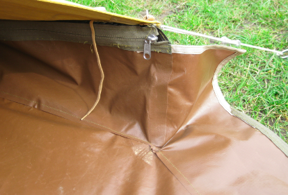Voor deze tent heeft Tatteljee een kuipgrondzeil op maat gemaakt. Langs de randen van het grondzeil loopt een rits, waarmee het zeil rond de hele tent wordt vastgezet. De binnentent wordt door middel van haken en ringen op zijn plaats gehouden.