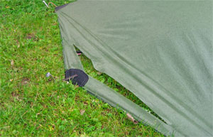 Afgelopen zomer is er door spelende kinderen een scheur in de tent gekomen,