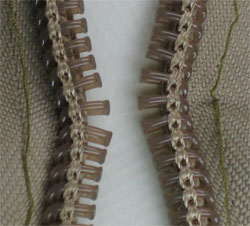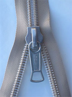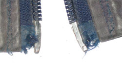 aan de rits getrokken wordt (foto rechts). De enige oplossing is de rits te vervangen.