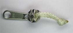 Wat ook nog wel eens gebeurd is dat het lipje van de schuiver afbreekt (foto links). Dit los je gemakkelijk zelf op door het missende deel te vervangen met bijvoorbeeld een stukje touw (foto rechts).