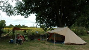 Op 1 van de foto's staat een opzetstukje voor de stok, dat 1 van onze klanten heeft bedacht, om de luifel vrijer van de tent te zetten. Voor bezitters van de Giraffe is dit opzetstukje gratis bij ons op te halen.