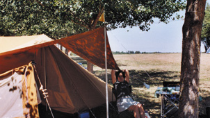 Zonneluifel Giraffe Dit is de zonneluifel van de Giraffe, waarmee je de tent de hele dag open kunt hebben. Bij mooi weer heb je meer schaduw en bij slecht weer kan er vrijwel geen regenwater in de woonruimte komen. De luifel is naar keuze links of rechts bruikbaar. We leveren de luifel inclusief stok.