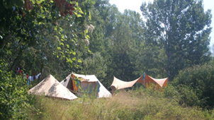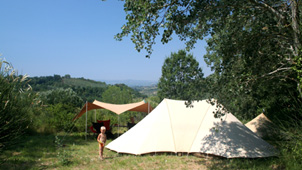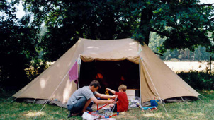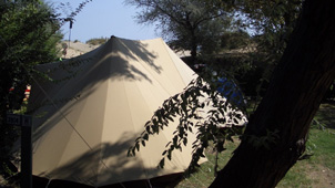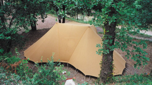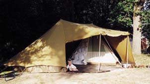 De Giraffe is een grote familietent met twee eenstoks binnententen die door middel van een pleinluifel aan elkaar verbonden zijn. Hierdoor ontstaat een gezellige, zeshoekige woonruimte. De tent is eenvoudig op te zetten en biedt ook bij regenachtig weer goed uitzicht. De schaapskooi van de pleinluifel is op veel manieren op te rollen. De achterkant van de pleinluifel kan worden opengezet, hiervoor zijn losse stokken en zelfs zijwangen te verkrijgen.