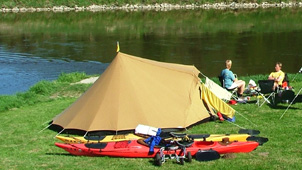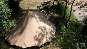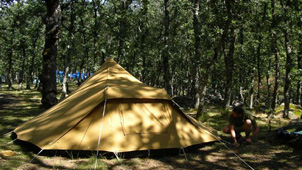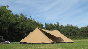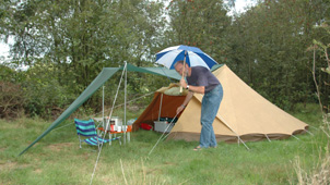 De Hermelijn De Hermelijn heeft twee stokjes met een hoogte van 120cm onder de schaapskooi, dit geeft een hoge instap en extra veel woonruimte. Deze tent wordt standaard geleverd met een A-stok waardoor je de woonruimte optimaal kunt gebruiken, er is voor twee personen meer dan voldoende ruimte om te zitten. Voorzien van slikranden rondom, een uitritsbare voordeur en met de bekende multifunctioneel wegrolbare zijkanten van de buitentent, is dit een ideale tent voor de kampeerder die wat meer op luxe is gesteld, maar toch een tent wil met een sympathieke, kleine uitstraling.Ook verkrijgbaar met tussenluifel.