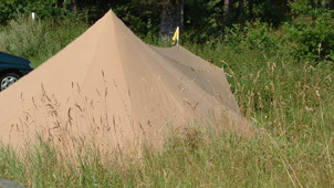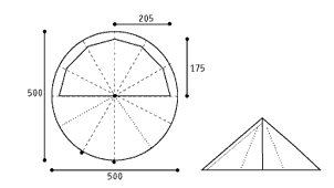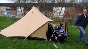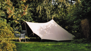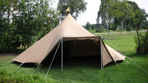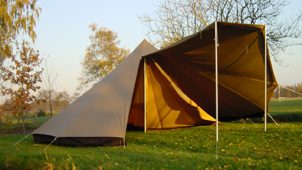 Kegelslak (met front) Een heerlijke lichtgewicht tent met veel ruimte. De tent is door z'n eenvoud wel heel makkelijk op te zetten en is zeer vriendelijk geprijsd. De binnentent van de Kegelslak is een halve cirkel. Met het grondzeil van een kwart cirkel kan worden gevarieerd.Een prijsvriendelijke tent voor de liefhebber van mooie lijnen en eenvoudige vormen. Door er een deur in te maken heeft deze uitvoering veel meer ruimte gekregen dan de basisversie. De voorzijde is uitgebreid en daardoor is de leefruimte, vooral als de tent gesloten is, aanzienlijk vergroot.