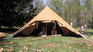 De mier Een ruime eenstokker die al 38 jaar bestaat. De ripstopnylon uitvoering heeft aan de twee tot in de nok doorlopende ritsen extra runners, zodat de schaapskooi in de nok te openen is voor extra ventilatie. Dit zorgt ervoor dat je 's ochtends de condens snel kwijtraakt. Oprolbare slikranden sluiten bij de ripstopnylon uitvoering de luifel tochtvrij af. De katoenen versie heeft oprolbare slikranden rondom. De binnentent heeft ritsen in de zijmuurtjes, zodat je de binnentent een stuk kunt terugrollen. Daarmee wordt de scheiding tussen slaapgedeelte en woonruimte flexibel en kun je de leefruimte vergroten. Met het gebruik van een A-stok creeer je nog meer leefruimte.