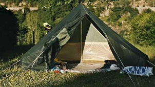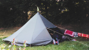 De Oester is een van de vijf tenten die tatteljee in de showroom heeft staan. met een woonruimte van een meter diep geschikt voor de rugzakkampeerder. De schaapskooi heeft aan de ene kant een korte rits en aan de andere kant loopt de rits door tot in de nok. De ripstop uitvoering heeft rondom slikranden.