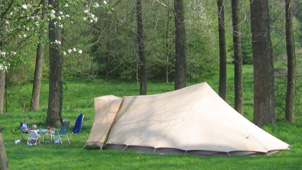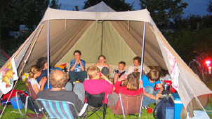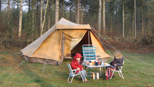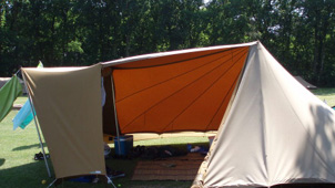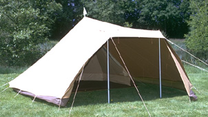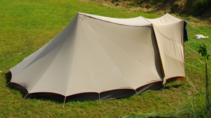 De Reuzenpadis onze grootste eenstokker. Hoewel het een grote tent is, kun je hem binnen 15 minuten opzetten. Hij heeft standaard een stalen A-stok. De binnentent heeft wegrolbare zijkanten en een tochtvrij af te sluiten woonruimte. Het is een tent waarin je op gewone kampeerstoelen kunt zitten. Bovendien biedt de Reuzenpad de mogelijkheid om een extra binnentent langs de zijkant te plaatsen. De noklat is om de afwatering van de tent langs de voorkant te vermijden, extra praktisch als je de luifel gebruikt die we speciaal voor dit model hebben ontworpen. Bij de Reuzenpad is een zonneluifel verkrijgbaar, een accessoire die veel toevoegt. Hij geeft schaduw en bij regen kan de uitritsbare deur geopend blijven. De zonneluifel wordt inclusief 2 telescoopstokken en een nokstok geleverd. Deze nokstok zorgt voor afwatering naar de zijkanten van de tent zodat er voor de deur geen plas ontstaat. Voor een gezin met kinderen een accessoire die veel extra comfort biedt.