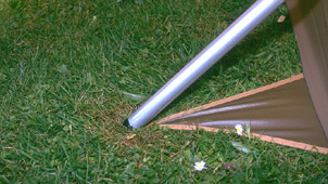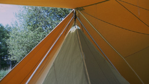 De A-stok is een voor de hand liggende uitvinding waar wij erg blij mee zijn. De stokken in de tent kunnen soms behoorlijk in de weg staan. Direct onder de nok splitst de A-stok zich in twee poten. De beide stokdelen staan tussen de binnentent en het buitendak zodat je er niet tegenaan loopt. En als je tent een tussen- of keukenluifel heeft staat er een rechte stok midden in de woonruimte, daar levert een A-stok veel winst op. De onderste stokdelen staan over een bol zodat ze niet in de grond weg kunnen zakken.