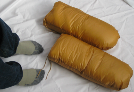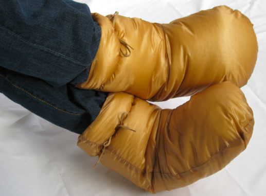Voetwarmers worden gemaakt van het ademende XTR light nylon microvezel met een dubbele laag Thinsulate liteloft als isolatie. Ze zijn ontwikkeld voor een klant die 's nachts altijd koude voeten had in de tent tijdens haar poolexpedities. De voetwarmers zijn dus absoluut geschikt voor de koudste plaatsen op aarde en isoleren beter dan sokken. In tegenstelling tot de donssloffen zijn de voetwarmers niet bedoeld om op te lopen, hoewel dit wel mogelijk is. Door de eenvoudige vorm passen de voetwarmers aan elke voet.