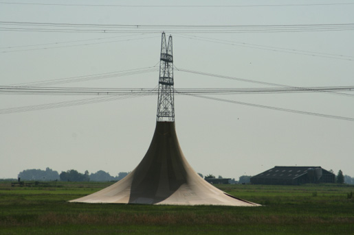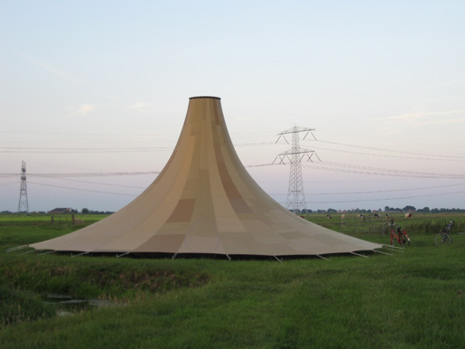 De vorm is gekozen zodat de tent op een vulkaan lijkt.
